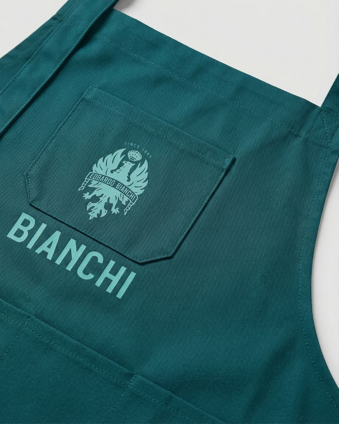 Grembiule resistente e funzionale con l’iconico logo Bianchi stampato sulla tasca frontale.
