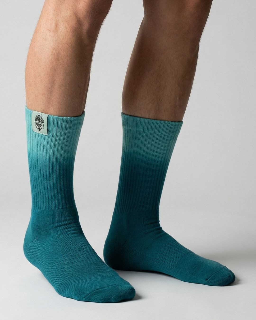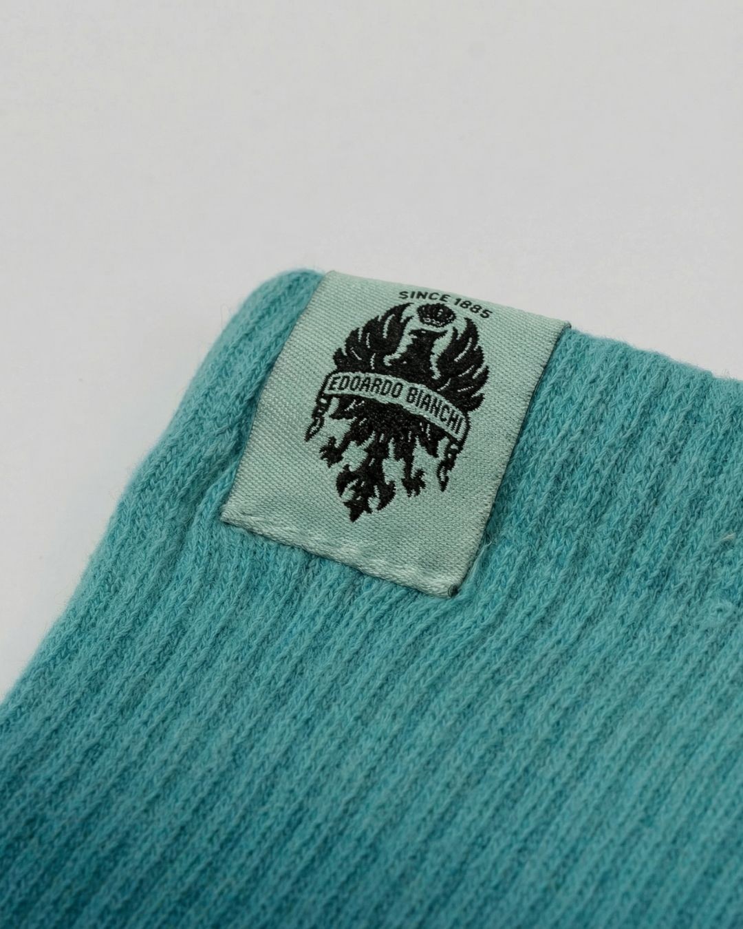 Calzini alti con effetto dégradé e logo Bianchi sull’etichetta tessuta.