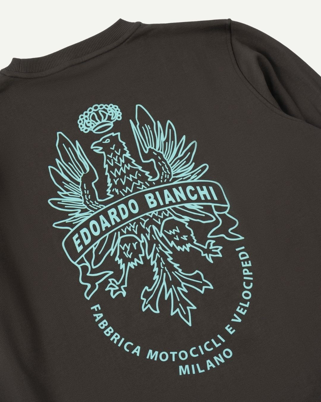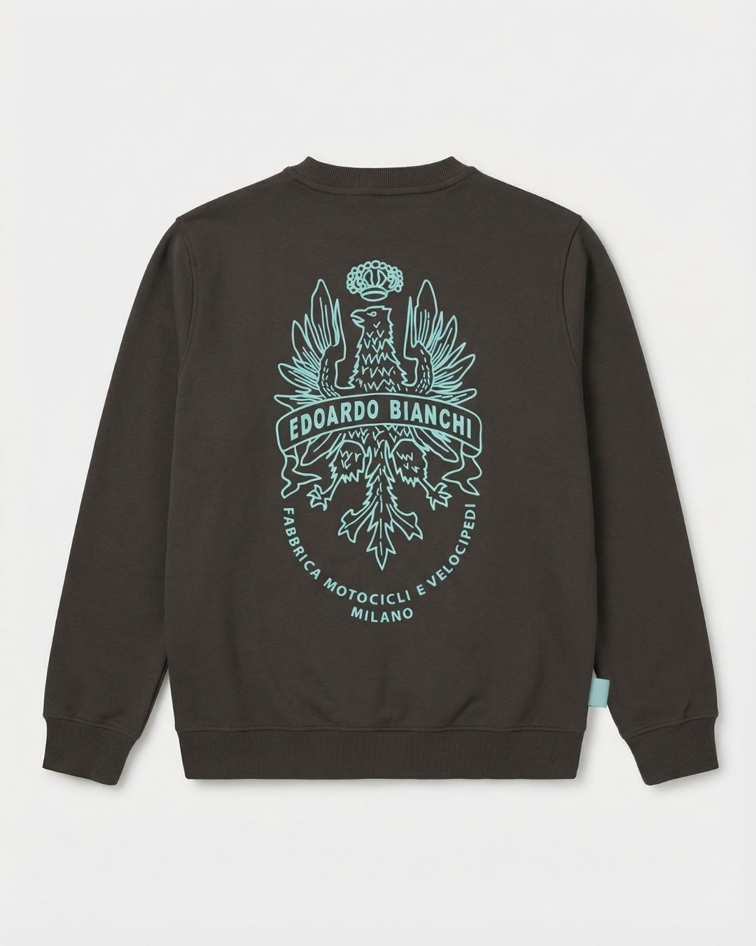 Crewneck girocollo in 100% cotone con l’iconico old logo Bianchi 1960 stampato sul retro, e il logo identificativo nel davanti lato cuore.